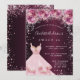 Invitación Dulce 16 vestido de purpurina burdeos rosa con flo