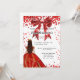 Una invitación moderna, elegante y glamurosa para una fiesta de 16 y 16 años. Un fondo blanco con chispas, un vestido rojo y un arco rojo. El nombre está escrito con una escritura de estilo con letras a mano moderna. Personalice y agregue los detalles de su fiesta.
