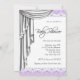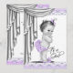 Adorable invitación de baby shower vintage de lavanda para niña. Esta linda invitación de baby shower de lavanda púrpura y gris se personaliza fácilmente para su evento agregando los detalles del evento, estilo de fuente, tamaño y color de la fuente, y redacción. Tenga en cuenta que todos los stickers, tarjetas y diseños de invitaciones que encontrará en Zazzle son gráficos impresos sin joyas reales, lazos, relieves, grabados o piezas o partes agregadas.