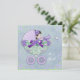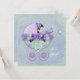 Hermosa invitación de baby shower de lavanda morado y verde claro. Esta adorable invitación de baby shower de morado y verde tiene un hermoso carruaje de bebé con flores y lazo con una dulce niña dentro. Puedes personalizar fácilmente esta linda invitación de baby shower de lavanda y verde agregando los detalles de tu evento, estilo de letra, tamaño y color de letra, y redacción.