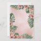 Un collage de animales bebés de la selva de safari silvestre dulce — jirafa, cebra, pantera, tigre y elefante — están escondidos de manera acogedora entre los hibiscos tropicales y la vegetación de monstera en este diseño de Baby Shower "A Sweet Baby Girl Is On the Way". El fondo es una acuarela rosa degradado. La parte posterior presenta dos pantanos tropicales de esquina sobre una repetición del fondo de la acuarela delantera. Diseño compuesto por Holiday Hearts Designs.
