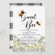 Esta tierna invitación a la ducha de bebé "Sweet as can Bee" (tan dulce como puede ser Bee), que pasa por carretera o conduce a través de un bebé, tiene un fondo blanco con abejas y flores. El reverso presenta un fondo blanco con patrones de comprobación de búfalo/gingham negros. Personalízalo para tus necesidades. Puedes encontrar productos coincidentes en mi tienda.