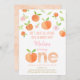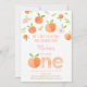 En esta encantadora invitación destacan los melocotones pintados a mano, las flores y la vegetación.
