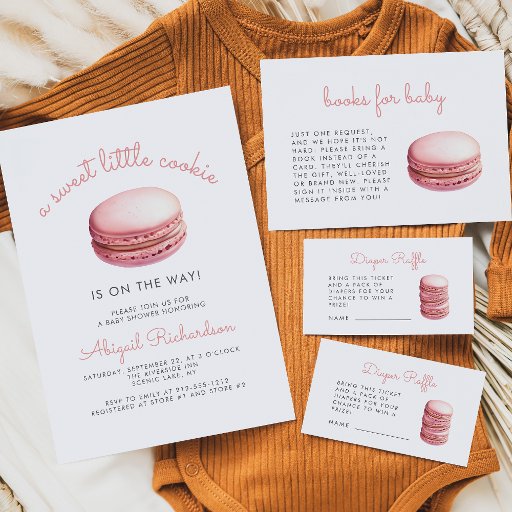 Invitación Dulce cookie Macaron Chica rosado Baby Shower