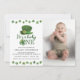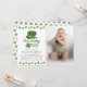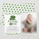 Celebra el primer cumpleaños de tu pequeño con estilo con nuestra Invitación de Cumpleaños Sweet Lucky One. Con la encantadora frase "Él es un afortunado" una foto y hermosos tréboles de acuarela en tonos verdes, esta invitación es perfecta para cualquier celebración alrededor del Día de San Patricio.
