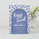 Un tema adorable de baby shower 'Berry Sweet' que presenta un lindo patrón de arándanos en acuarela. Una tipografía de escritura a mano blanca mezclada con una fuente simple en un arco azul polvoriento. Puedes cambiar los colores del arco y la fuente a lo que te guste. También puedes cambiar el color de fondo en la parte delantera y trasera, así como el arco (círculo superior y rectángulo en el diseño). Invitación de baby shower Blue Arch Blueberry Berry Sweet perfecta para primavera y verano, o realmente en cualquier momento del año.