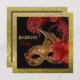 Dulce de la mascarada Dieciséis fiestas rojos, una falsa invitación al Relieve metalizado de oro, con una máscara veneciana roja, dorada con plumas rojas sobre fondo negro con un borde dorado de falso Relieve metalizado de oro con textura cruda. Un diseño de plantilla perfecto para su dulce bola de máscaras de 16 años o el fiesta de máscaras de la raza Mardi Gras. Tenga en cuenta que no hay Relieve metalizado de oro, máscara o plumas reales, pero todas están "impresas" en imágenes.