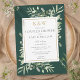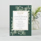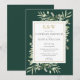 Con delicadas hojas de vegetación en acuarela sobre un fondo verde esmeralda, esta elegante invitación para la fiesta de parejas se puede personalizar con las iniciales de su monograma dorado y la información especial de la boda. Diseñado por Thisisnotme©