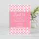 Elegante dulce dieciséis con impresionante diseño de rompecabezas a cuadros en un moderno esquema de color rosa y blanco. Perfecto para un dulce bash de 16, esta invitación hará una impresión duradera. ¡Elige la tuya!
