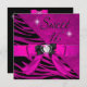 Dulce Dieciséis Dulces Dieciséis Cumpleaños Fiesta Zebra Caliente Rosa Negro Bow Diamond Invitan a la Fiesta del Cumpleaños Elegante. Zizzago