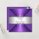 Recorte de flores plateadas en morado con globo plateado en invitación trasera , dulce fiesta de cumpleaños dieciséis. Personalizar con sus propios detalles. RSVP coincidente disponible.