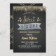 Una brillante invitación purpurina. El plata y el oro brillan sobre un fondo oscuro con una fuente divertida.