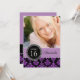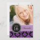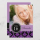 Femenino, diversión, lindos, con todo sofisticado y elegante, este negro personalizado e invitación púrpura del fiesta del dulce dieciséis del damasco del purpurina con su foto es la de manera perfecta de invitar a sus huéspedes al fiesta del dulce dieciséis de su hija. Nota: el purpurina es un efecto IMPRESO de la foto. Diseño de Elke Clarke©.