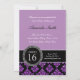INVITACIÓN DULCE DIECISÉIS, PURPURINA PÚRPURA, DAMASCO NEGRO