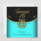 Invitación Dulce Dieciséis Verde azulado Oro Dulce Negro 16