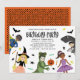 Esta divertida invitación de fiesta de cumpleaños presenta a 5 niños dibujados a mano con disfraces (un superhéroe, bruja, dinosaurio, princesa bailarina y tiburón). Otros pequeños acentos incluyen murciélagos, estrellas, dulces, arañas y una pequeña calabaza de Halloween. La parte trasera de la tarjeta contiene un patrón de puntos sobre un fondo naranja. ¡Perfecto para tu pequeño que quiere una fiesta de disfraces de cumpleaños inspirada en Halloween! Para solicitudes de diseño personalizado o producto, por favor contáctame (Tracey) en orabellaprints@outlook.com.