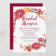 Esta elegante invitación a la ducha de flores de color rojo burdeos de otoño presenta un hermoso tema de la cosecha de otoño con hojas, bayas y flores. Colores en burdeos, naranjas, marrones y rojos con una corona floral y de baya.