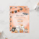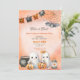 Invitación de Halloween de fantasma lindo en naranja, negro y blanco .