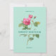 Invite a sus huéspedes a una celebración Sweet 16 con nuestra encantadora invitación a la fiesta de cumpleaños Mint Green Floral. En la invitación se respira un suave fondo verde menta, adornado con una delicada rosa rosa rosada vintage, lo que da un toque de elegancia e intemporalidad. Girar la tarjeta para revelar todos los detalles del fiesta presentados en la parte posterior. Esta invitación captura la esencia del encanto vintage y la sofisticación, prometiendo una celebración inolvidable para el honor de cumpleaños.