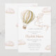 Esta encantadora invitación para baby shower cuenta con un globo aerostático y nubes lindas, junto con tipografía de letra cursiva elegante. Diseñado por Thisisnotme©