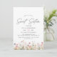 Elegantes invitaciones para fiestas de 16 años con ilustraciones acuarelas de flores silvestres. Pastel floral sobre blanco. El lado inverso es rosa rubor, con un patrón de coordinación.