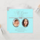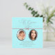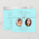 Hermosa invitación de Quinceañera con foto de bebé y actual en plata y azul turquesa. Esta dulce invitación de Quinceañera con foto en plata y azul turquesa presenta una elegante cinta y lazo plateados con marcos ovalados de plata para dos fotos: una de bebé y la otra actual. Personalice esta elegante invitación de Quinceañera con foto en plata y azul turquesa simplemente eligiendo el botón "Personalizar" para comenzar a agregar sus fotos, detalles del evento, estilo de fuente, tamaño y color de la fuente, y redacción. Tenga en cuenta que todos los diseños de tarjetas e invitaciones que encontrará en Zazzle son gráficos impresos sin joyas reales, lazos, partes o piezas en relieve, estampados o agregados.
