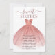 Esta invitación de cumpleaños es perfecta para una princesa, con un vestido rosa y un falso purpurina de oro rosa y un guión moderno. Reemplace fácilmente los detalles del fiesta haciendo clic en el botón "Personalizar".
