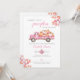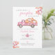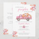 Esta elegante invitación para baby shower presenta otoño rústico, hojas de otoño y un camión rosa lindo lleno de calabazas. Con el código QR de tu registro y los detalles del evento en el reverso. Diseñado por Thisisnotme©