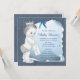 Adorable invitación de baby shower de mezclilla azul para niño. Puedes personalizar fácilmente esta dulce invitación de baby shower de mezclilla azul para tu evento.