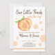 Celebra tu ducha de bebé de parejas con nuestro dulce acuarela como una invitación a la fiesta de melocotón. El diseño presenta un ilustracion de melocotón acuático dibujado a mano sobre un fondo de color melocotón pastel editable. Esta dulce y pequeña invitación a la ducha de melocotón es perfecta para tu pequeño fiesta de una ducha de bebé, una ducha dulce de pato o dulce como melocotón, fiesta de primer cumpleaños