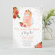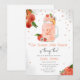 Invitación de cumpleaños con temática de limo de fruta con ilustracion de limo de melocotón con fresa y margarita. Personalice el número en suavemente.