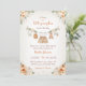 Prepárate para celebrar la próxima llegada de tu pequeña calabaza con nuestra Invitación de Cumpleaños de Otoño para Bebé, Dulce Pequeña Calabaza. Esta encantadora invitación presenta hermosas ropas de bebé en naranja, crema y beige pintadas al estilo acuarela que cuelgan de una cuerda, junto con flores y calabazas encantadoras. Captura la esencia del otoño mientras expresa la alegría de dar la bienvenida a un nuevo bebé. Esta invitación es la forma perfecta de establecer el tono para tu fiesta de bebé con tema de otoño y está disponible en múltiples colores para adaptarse a tus preferencias. ¡La personalización es fácil!