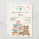 ¡A todos los niños les encanta leer, sin importar su género! Abastece la biblioteca de un bebé en una fiesta de regalos para bebé "trae un libro para bebé". Agrega instrucciones para traer un libro a la fiesta con estas invitaciones de "La primera biblioteca del bebé". También puedes usar estas invitaciones para invitar a los invitados a una fiesta de regalos para bebé organizada en una librería o biblioteca o en tu hogar. ¡Perfecto para futuros padres que son maestros, bibliotecarios o ratones de biblioteca, que simplemente aman leer! El diseño moderno con un toque vintage presenta una pila de libros con una taza de té encima y un osito de peluche al lado, todo en colores pastel naturales. ¡Perfecto para una fiesta de regalos neutral en cuanto al género, para bebé niño o bebé niña! El texto en tipografía manuscrita y letra script es totalmente editable haciendo clic en el botón "Personalizar".