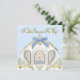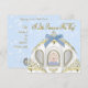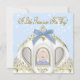 Invitaciones adorables para baby shower de príncipe con carruaje blanco y dorado y lazo azul bebé para niño. Agregue sus datos en la parte delantera y/o trasera de esta linda invitación para baby shower de príncipe azul al agregar los detalles de su evento, estilo de fuente, tamaño y color de la fuente, y redacción. Algunos gráficos gráficos©delightful-doodles. Tenga en cuenta que todos los diseños de invitaciones que encontrará en Zazzle son gráficos impresos en papel stock plano sin joyas reales, lazos, partes o piezas en relieve, grabadas o agregadas.