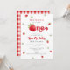 Esta invitación de cumpleaños es la invitación perfecta para el "primer cumpleaños de Berry" de tu pequeña persona, mostrando un tema adorable que seguro incitará a amigos y familiares a unirse a la celebración. La principal atracción de la invitación es el creativamente diseñado "uno", juguetamente integrado con una jugosa fresa para simbolizar el especial 'berry' del primer año. Por encima del número, la invitación anuncia con orgullo que tu pequeña "es dulce", invitando a los invitados a compartir la alegría de este hito. El diseño es encantador, con fresas vibrantes y jugosas, que parecen bailar alrededor de las palabras, aportando un toque de alegría y dulzura a la invitación. Los detalles del evento están cuidadosamente expuestos debajo del gráfico central sobre un fondo blanco limpio que hace que el rojo de las fresas y el texto aparezca, creando una apariencia atractiva y alegre. El lado inverso complementa el frente con un patrón clásico de gingham rojo y blanco, acentuando aún más el tema de las bayas y añadiendo un encanto de picnic al diseño general. Diseñada con atención a los detalles, esta invitación no es sólo una llamada a un fiesta, sino también un lindo keepsake que resume la esencia de una alegre celebración de primer cumpleaños.
