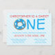 Dulce una invitación de donut boy primer cumpleaños con un bonito donut y fondo azul pastel a rayas
