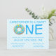 Dulce una invitación de donut boy primer cumpleaños con un bonito donut y fondo azul pastel a rayas