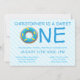 Dulce una invitación de donut boy primer cumpleaños con un bonito donut y fondo azul pastel a rayas