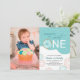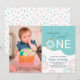 Esta encantadora invitación para una fiesta de cumpleaños está diseñada para un fiesta de primer cumpleaños de un chica. El texto moderno dice "(Nombre) es un dulce uno" acentuado con una verde azulada espoleta y espolvorea y ofrece una foto vertical para una foto del chica de cumpleaños.