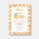 Invitación de cumpleaños 1 de naranja cítrico Dulce Uno. ¡Celebre el primer hito de su pequeño con nuestra pequeña y adorable invitación de cumpleaños 1 de naranja cítrico! Este dulce diseño con una encantadora fruta naranja con un lazo es perfecto para su celebración de cumpleaños número uno de verano. ¡Pida ahora! Accesorios de fiesta a juego disponibles.