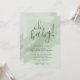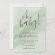 Esta simple y elegante invitación para baby shower presenta un fondo de acuarela en un verde salvia claro con fuentes grises. En la parte superior, "¡Oh Baby!" se muestra de manera prominente en caligrafía grande y negrita, con un acento de corazón en el signo de exclamación. El diseño permite personalizar los colores, ya que la acuarela se asienta sobre el fondo de color. El texto se complementa con tipografía serif clásica y acentos de escritura. Esta invitación celebra a la futura madre y es perfecta para un baby shower neutral en cuanto al género, adecuada para usar durante todo el año. Su elegancia chic y discreta la convierte en una opción versátil para cualquier tema de baby shower, agregando un toque clásico a su día especial. Invitación simple y elegante de acuarela en verde salvia claro para baby shower. Disponible como invitación impresa o como invitación digital descargable que puede enviar por correo electrónico o imprimir localmente.