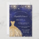 Invitación Dulce vestido dorado azul marino 16 de lujo