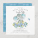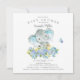 Adorable elefante alegre con flores azules de bonito para una ducha de bebé. Invitamos a nuestros huéspedes a ver la parte de atrás de la coordinación para un toque especial.