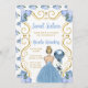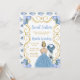 Esta dulce invitación de dieciséis años tiene un marco dorado elegante, una bella princesa con el pelo rubio y un vestido azul polvoriento, flores y un globo. Es perfecto para una dulce fiesta de 16 años.