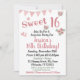 Invitación de cumpleaños Sweet 16, invitación de cumpleaños con flores rosas