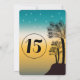 Invitaciones de Dulces 16 con Puesta de Sol Rosa y Luces Estrelladas Invitaciones Temáticas de Playa de Palmeras Diseñadas por Dream Big Digital Design