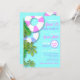 Este exquisito diseño de invitación captura la esencia de una fiesta de Sweet 16 vibrante e inolvidable junto a la piscina. Sumérjase en la emoción con un toque personalizado que hará que su celebración sea verdaderamente única. La invitación muestra un fondo de piscina ilustrado artísticamente, adornado con llamativos aros de natación de dos tonos y exuberantes plantas tropicales. Esta combinación crea una impresionante exhibición visual que establece el tono perfecto para una extravagancia de temática tropical.