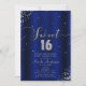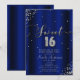 DULCES 16 Dieciséis Invitaciones de Esquina de Confeti Plateado Azul Real.