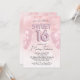 Esta invitación a la fiesta Sweet 16 tiene un tema colorido y glamuroso. El título "Sweet 16" está impreso en globos de Relieve metalizado rosado, con globos fiestas de color rosa suave colocados a ambos lados. El fondo está decorado con un degradado de mármol rosa purpurina.