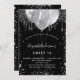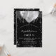 Un elegante fondo negro. Decorada con purpurinas de plata falsa y globos. Personalice y agregue un nombre, edad y detalles del fiesta. El nombre se escribe con un guión de estilo con letras a mano